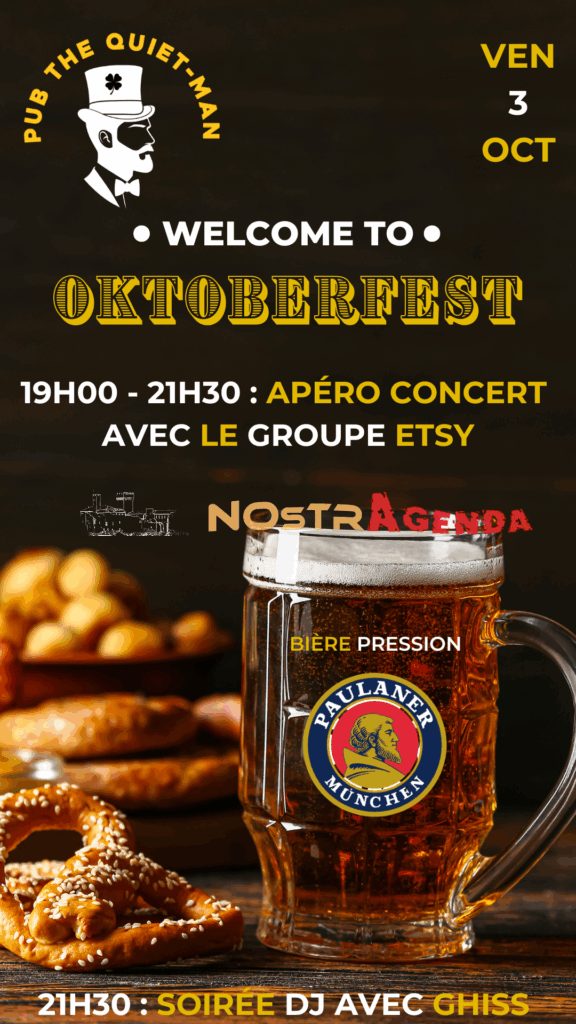 Oktoberfest – Quiet Man Vendredi 03 octobre 2025 à partir de 19h The Quiet Man Oktoberfest Ambiance Oktoberfest garantie ! Viens fêter la bière comme à Munich, version locale […]