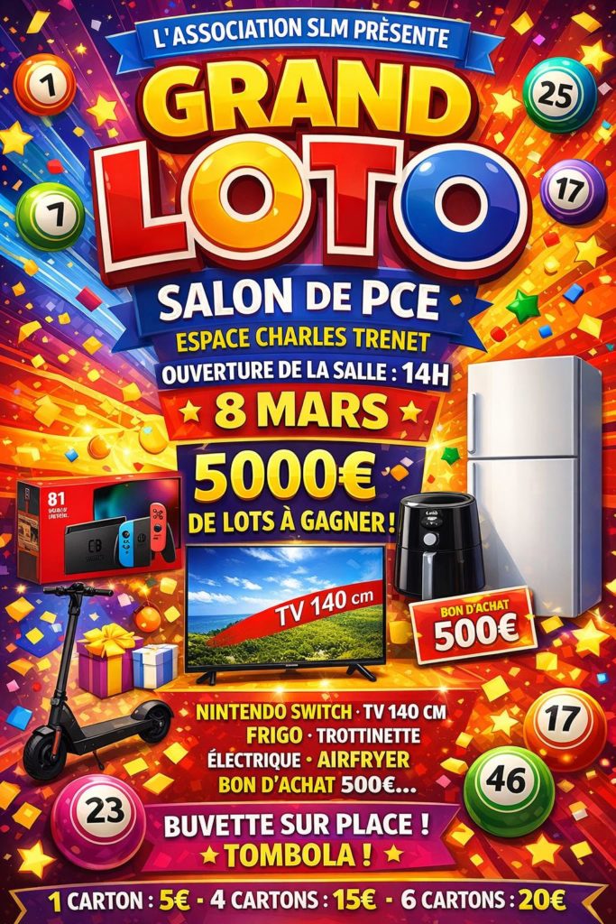 Loto Sports Loisirs Municipaux   Dimanche 08 mars 2026 Ouverture à 14h Espace Charles Trenet   Loto Sports Loisirs Municipaux   Nombreux lots à gagner source : Sports Loisirs Municipaux […]